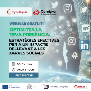 ![]() 9 d’octubrede 14:00 – 16:00 h.Cambra de Comerç de TerrassaAprèn com planificar i executar estratègies efectives a Instagram per a […]